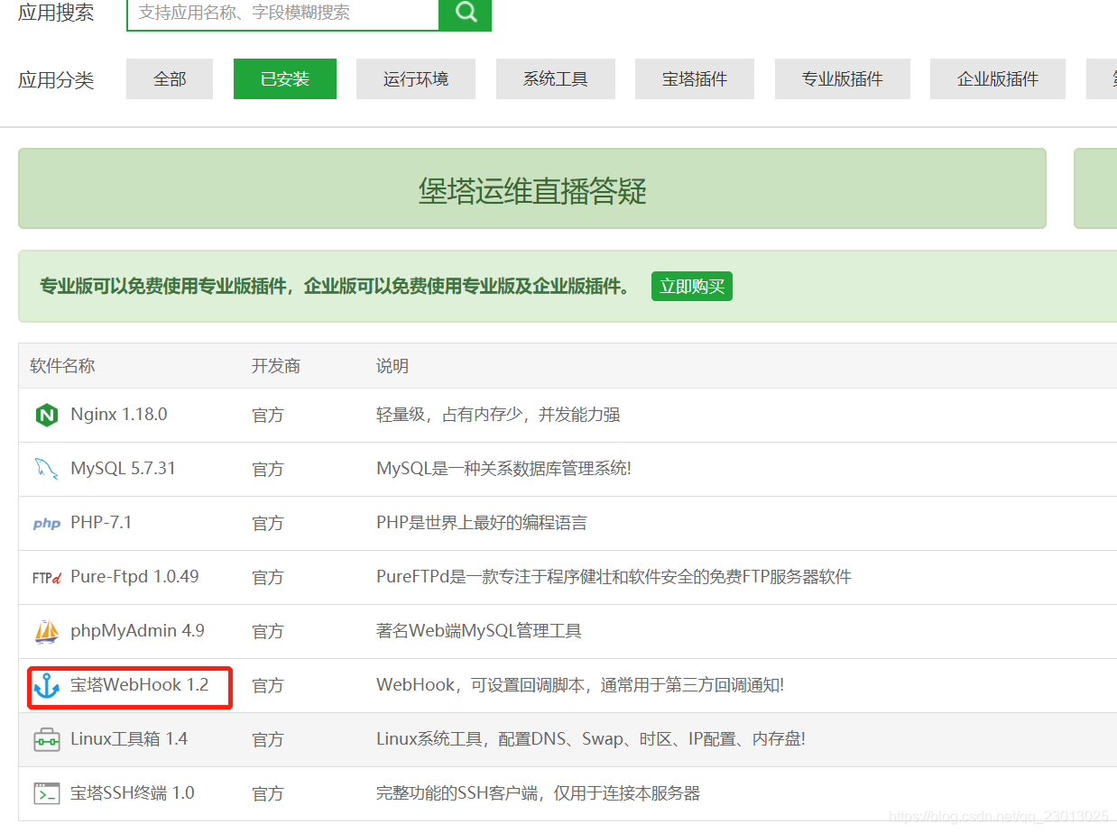 1、安装 宝塔WebHook 1.2